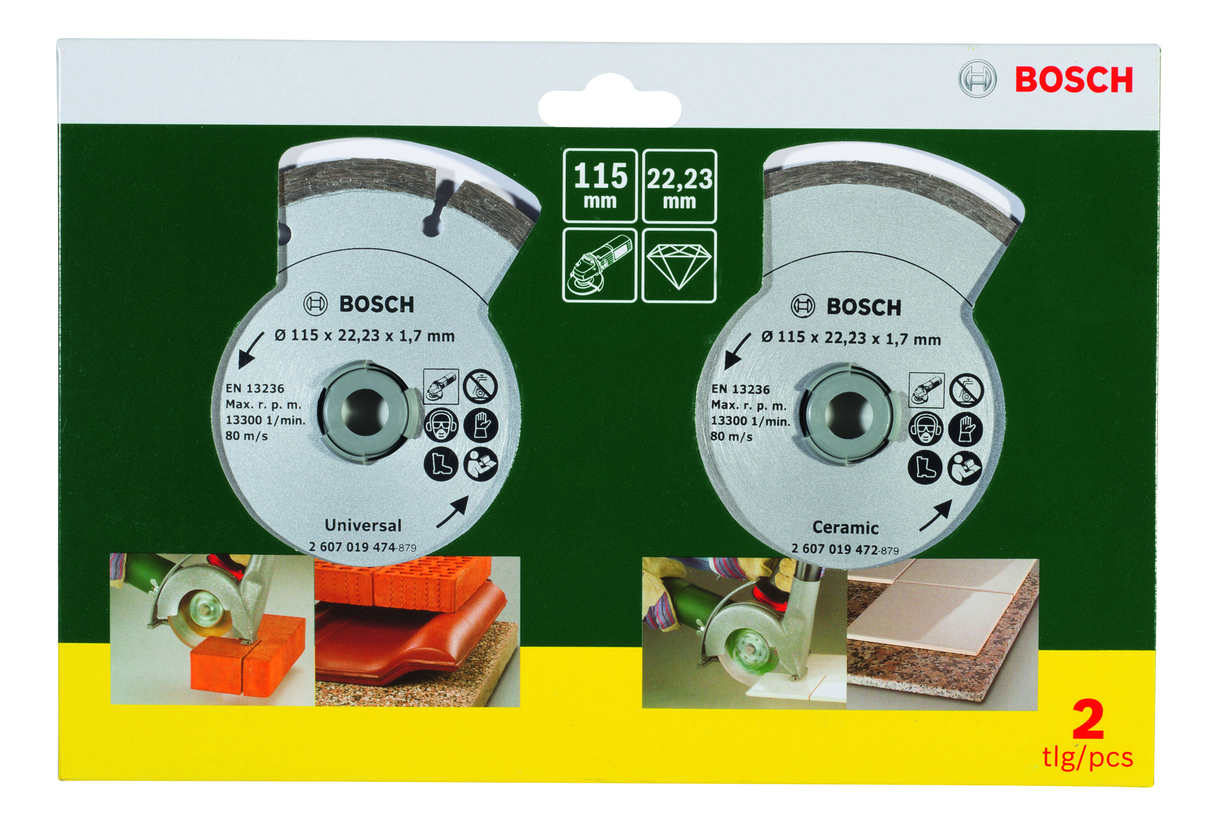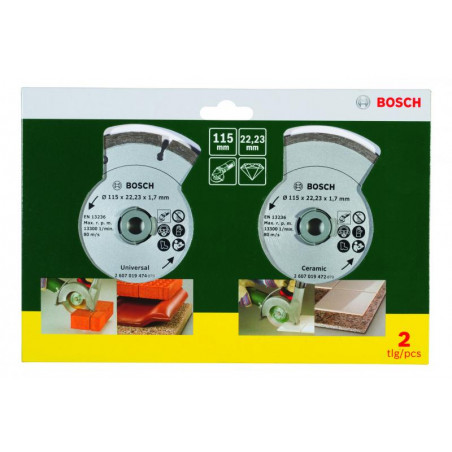 Emballage: 2Marque: BoschRéférence: 2607019478EAN: 3165140415965Description: BROSSES MP (SET DE 2 DISQ. DIAM. 115MM CARR.+UNIV.)