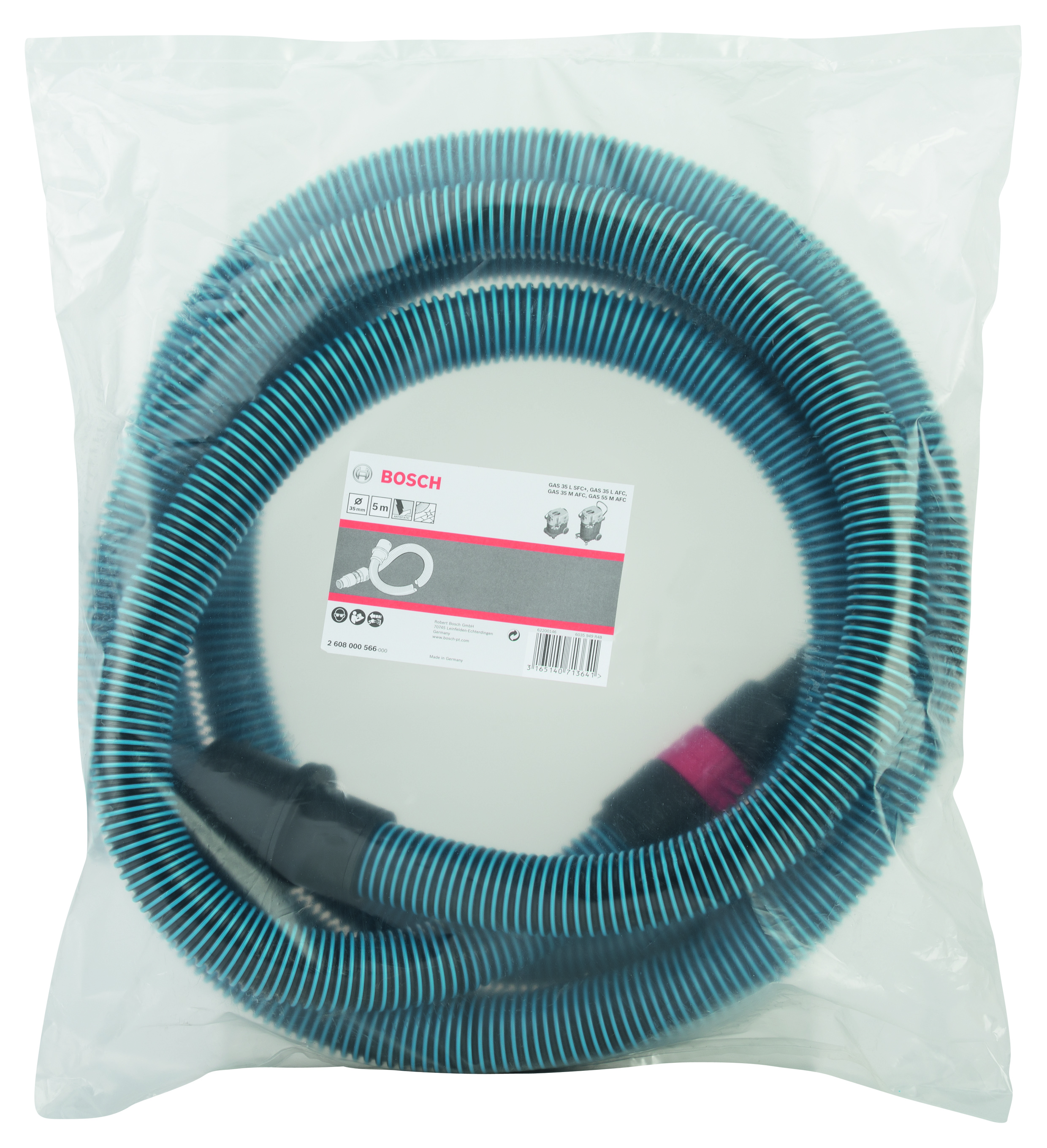 Emballage: 1Marque: BoschRéférence: 2608000566EAN: 3165140713641Description: Tuyau antistatique à connexion baïonnette GAS 35-55, 35 mm x 5 m