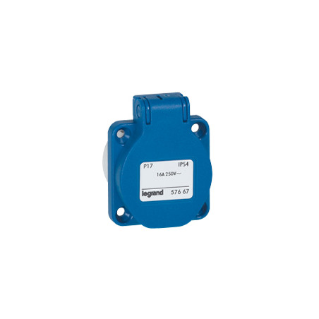 Socle droit entr.r. P17 Tempra bleu - 250 V - 16 A - 2 P + T / Non stocké! / Emballage: 20 - 100 - 1000