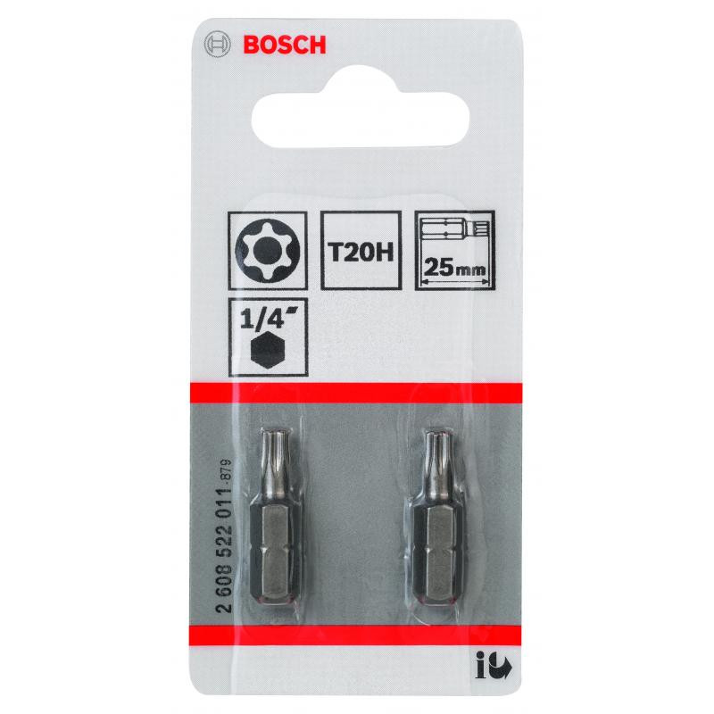 Emballage: 2Marque: BoschRéférence: 2608522011EAN: 3165140608206Description: Embout de vissage Security-Torx extra-dur T20H, 25 mm 2x