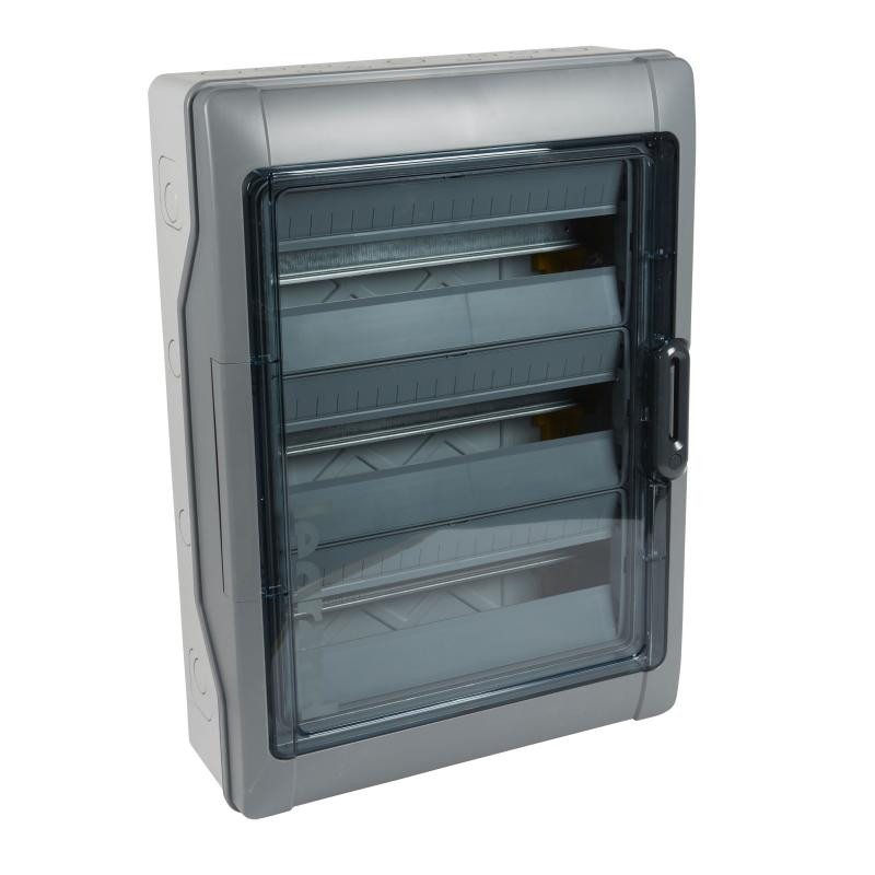 Description: Plexo³ Coffret de distribution étanches 18 modules par rangée - 3 rangées - 3 obuturateurs de 5 modules - IP65 - IK09