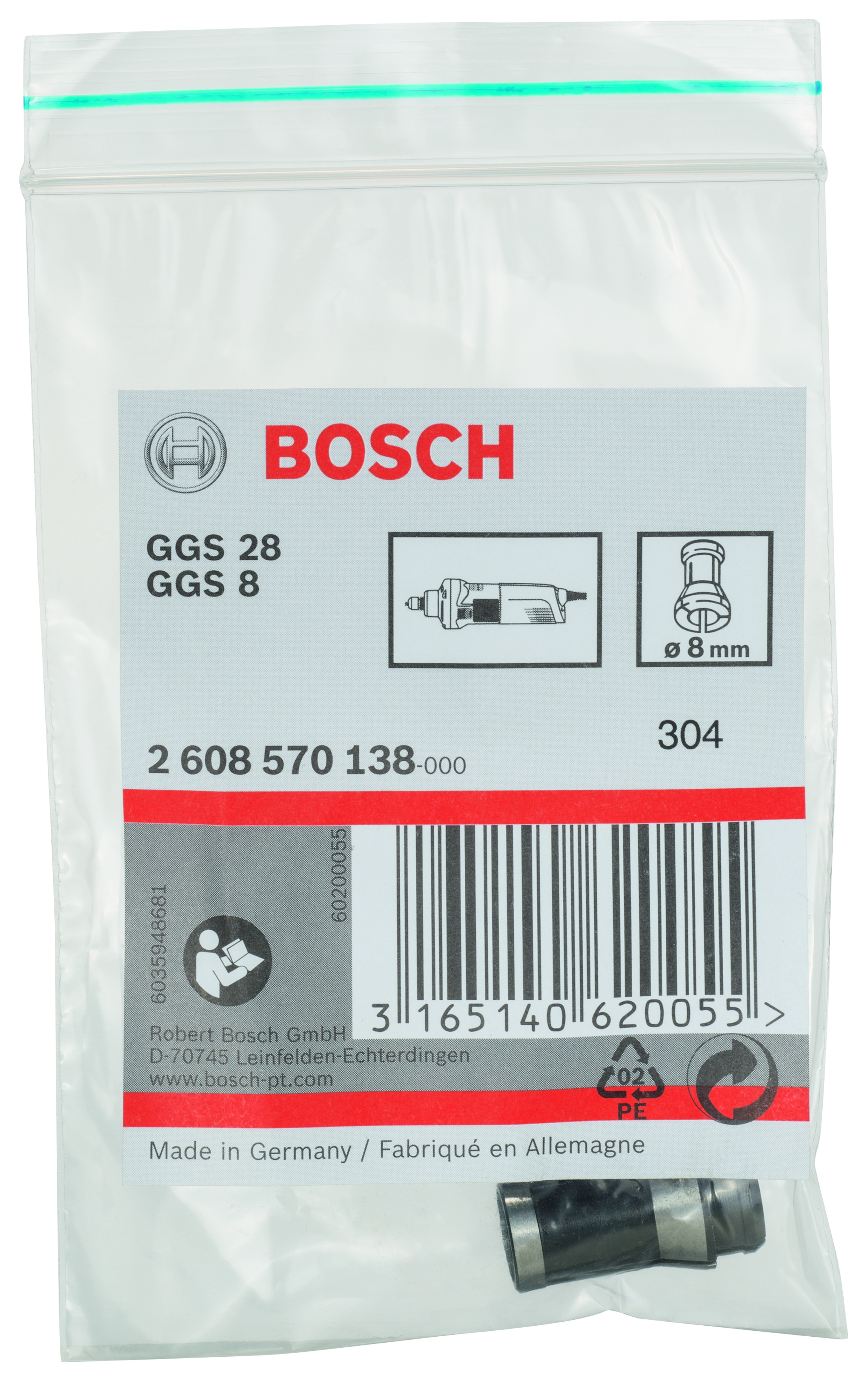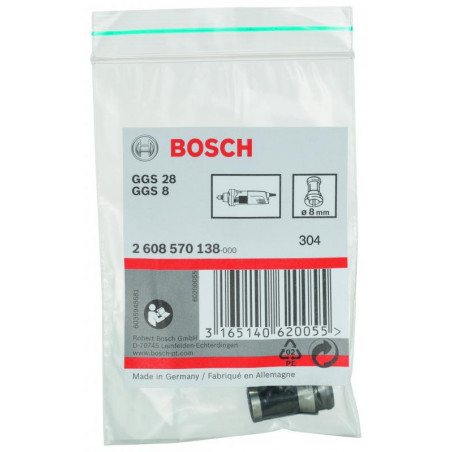 Emballage: 1Marque: BoschRéférence: 2608570138EAN: 3165140620055Description: Pince de serrage sans écrou de serrage 8 mm