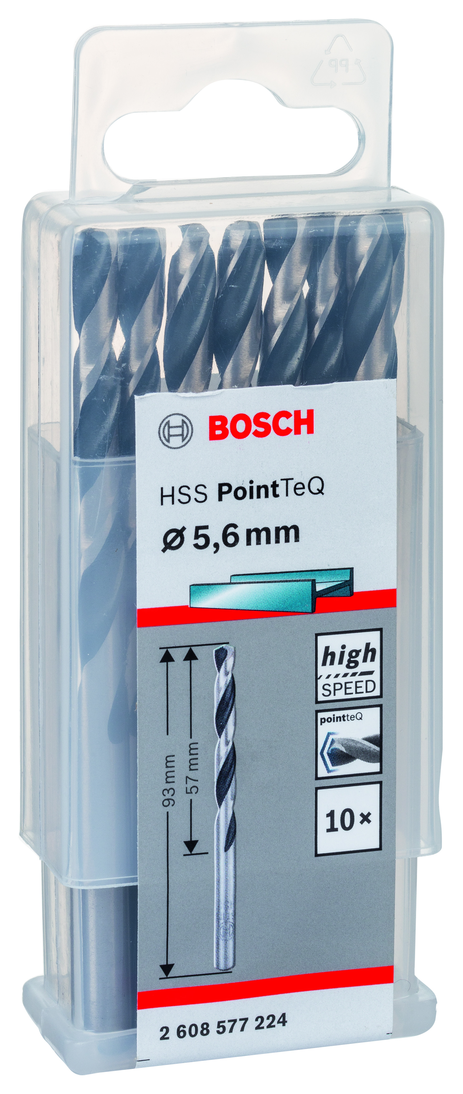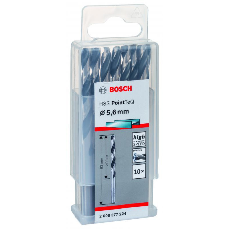 Emballage: 10Marque: BoschRéférence: 2608577224EAN: 3165140907330Description: Foret hélicoïdal HSS PointTeQ 5,6 mm 10x