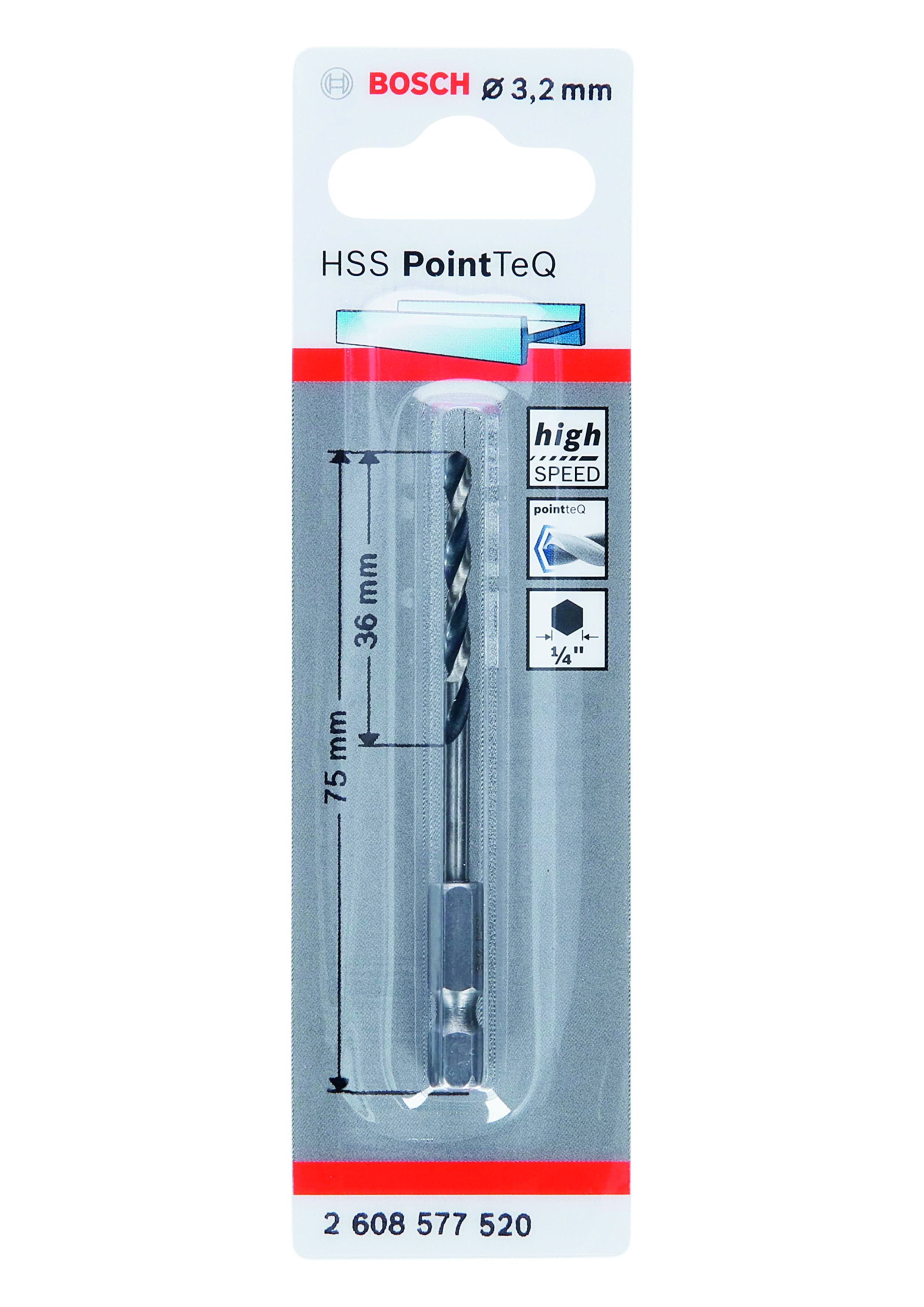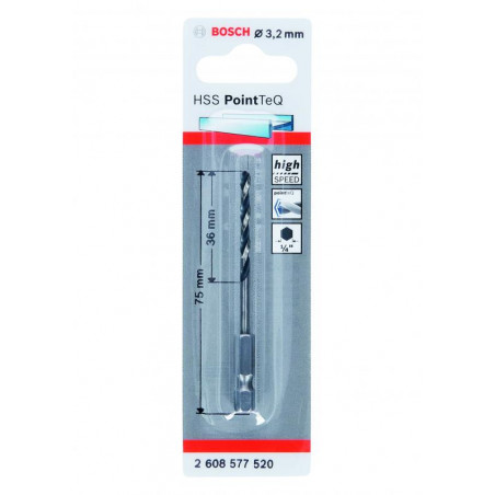 Emballage: 1Marque: BoschRéférence: 2608577520EAN: 6949509231352Description: Foret à métaux HSS PointTeQ 3.2mm