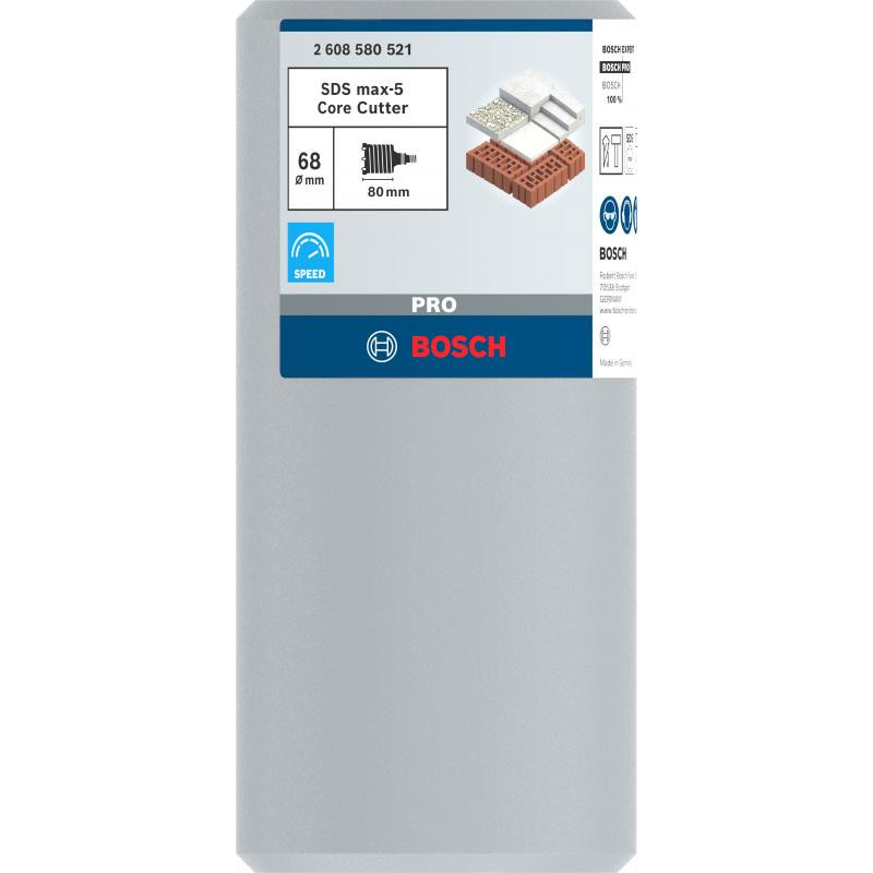 Emballage: 1Marque: BoschRéférence: 2608580521EAN: 3165140557764Description: Couronne PRO SDS max-5 Core Cutter vissee 68x80x108 mm