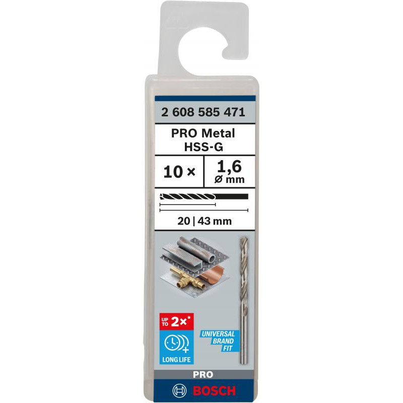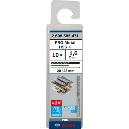 10 Forets HSS-G PRO pour le Métal1.6x20x43 mm