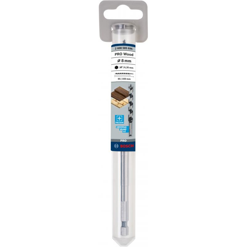 Emballage: 1Marque: BoschRéférence: 2608585696EAN: 3165140488662Description: Mèche simple spirale PRO pour le Bois 8x95x160 mm