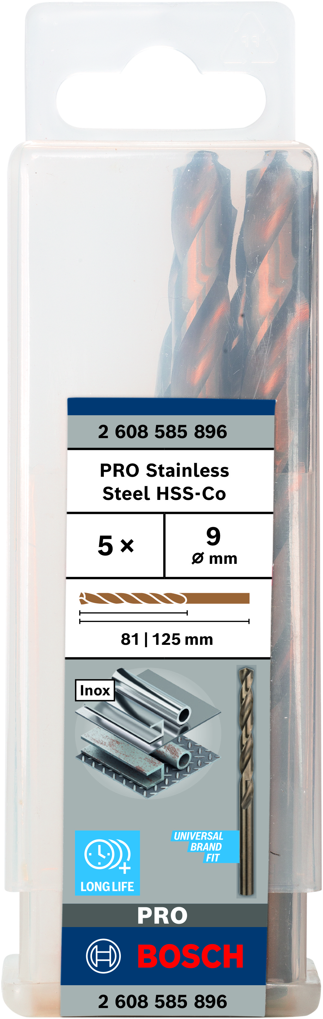 5 Forets HSS-Co PRO pour l'Inox 9x81x125 mm
