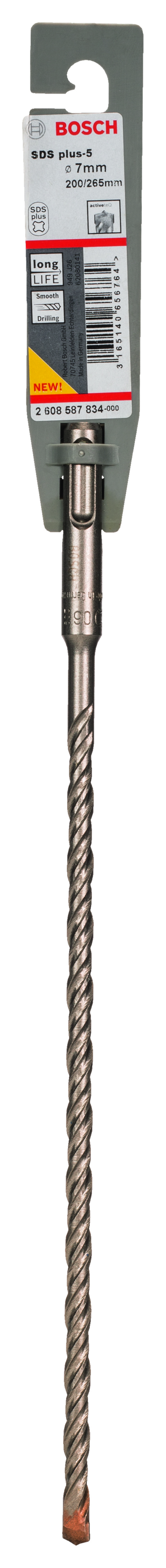 Emballage: 1Marque: BoschRéférence: 2608587834EAN: 3165140656764Description: Foret SDS-Plus-5 pour perforateur, 7 x 200 x 265 mm