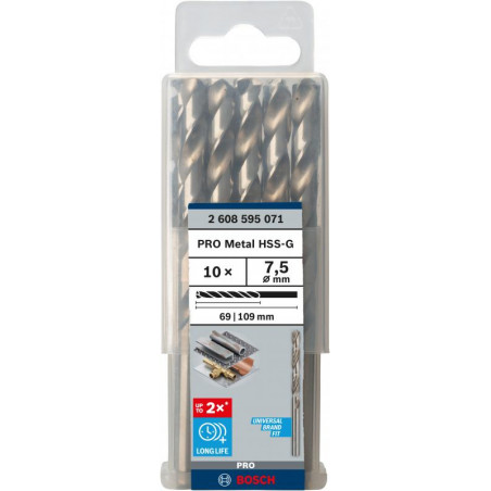 10 Forets HSS-G PRO pour le Métal 7.5x69x109 mm