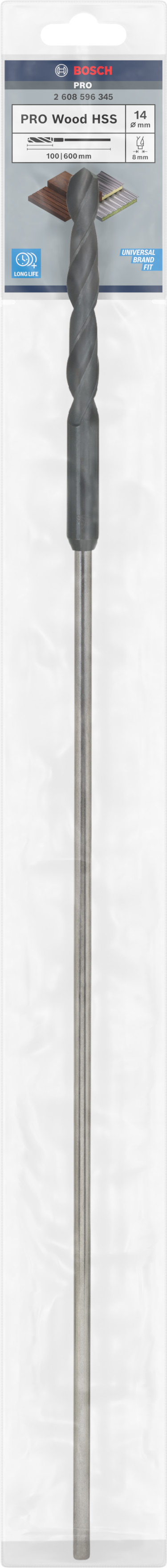Emballage: 1Marque: BoschRéférence: 2608596345EAN: 3165140059510Description: Mèche pour Coffrage PRO HSS 14x100x600 mm