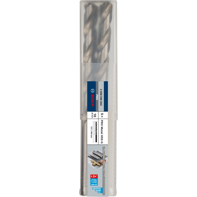 Emballage: 5Marque: BoschRéférence: 2608596832EAN: 3165140067225Description: 5 Forets HSS-G PRO pour le Métal 10x121x184 mm