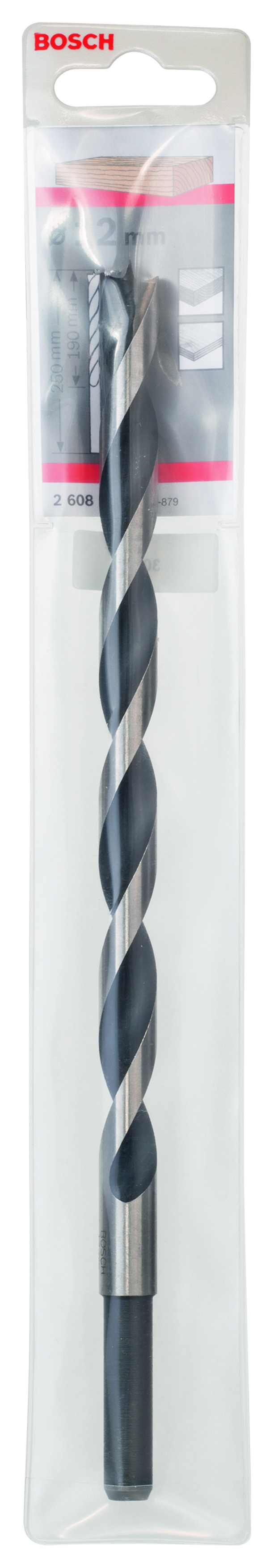 Emballage: 1Marque: BoschRéférence: 2608597190EAN: 3165140099561Description: Mèche à bois PRO Industrielle, pointe M 12 x 250 mm, d 10 mm