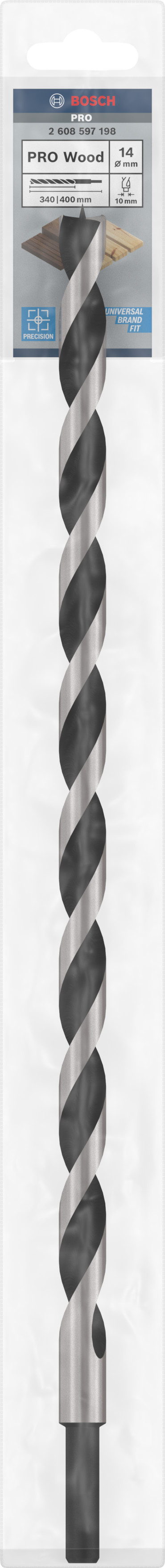 Emballage: 1Marque: BoschRéférence: 2608597198EAN: 3165140099646Description: Mèche à bois PRO Industrielle 14x340x400 mm