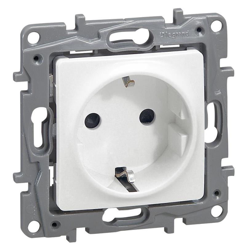 Description: Niloé prise 2P+T schuko 16A bornes auto blanc à griffes