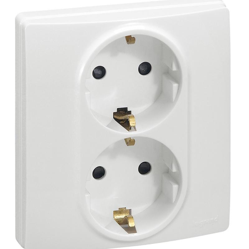 Description: Niloé prise 2P+T double compac schuko 16A blanc à griffes