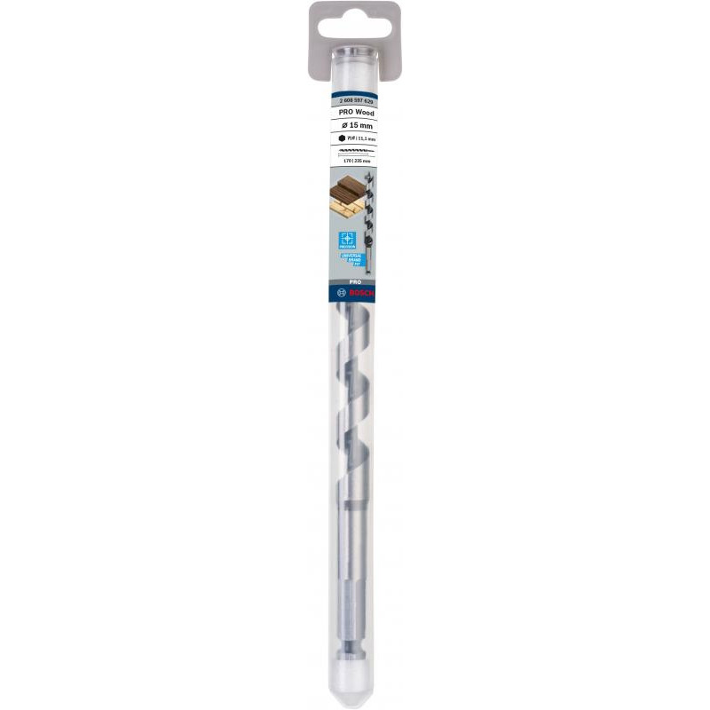 Emballage: 1Marque: BoschRéférence: 2608597629EAN: 3165140183383Description: Mèche simple spirale PRO pour le bois 15x170x235 mm