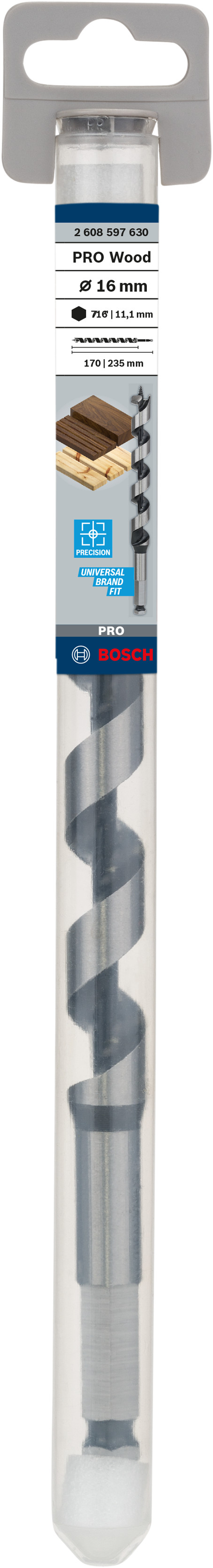 Emballage: 1Marque: BoschRéférence: 2608597630EAN: 3165140183390Description: Mèche simple spirale PRO pour le bois 16x170x235 mm