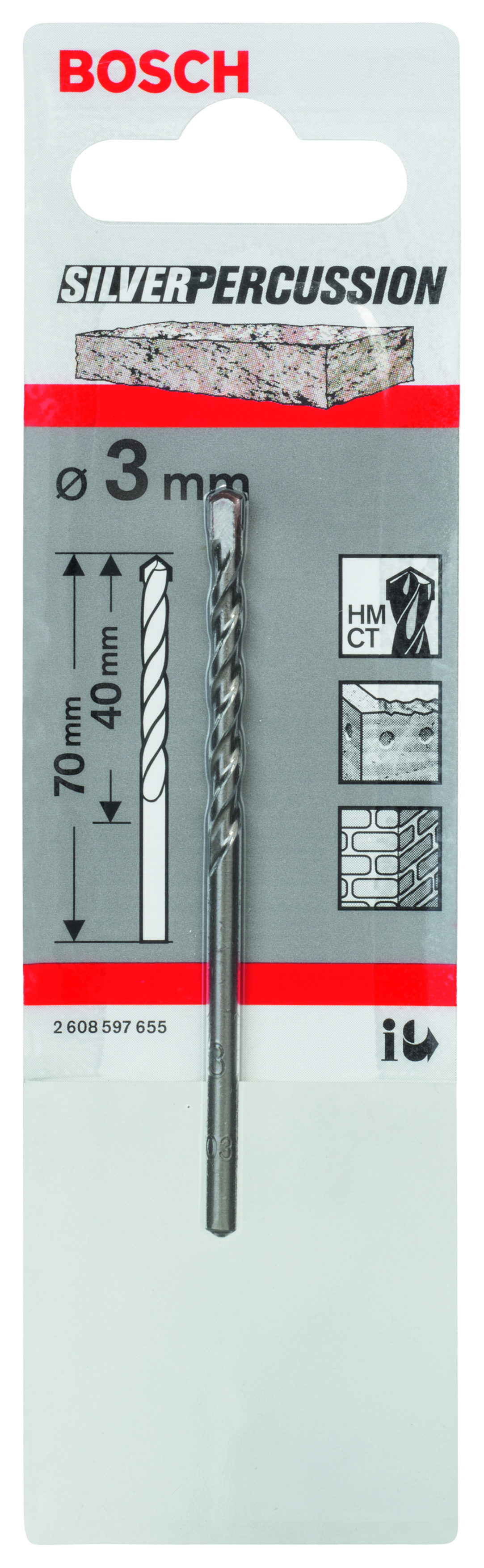 Foret à béton CYL-3, 3 x 40 x 70 mm, D2,8 mm