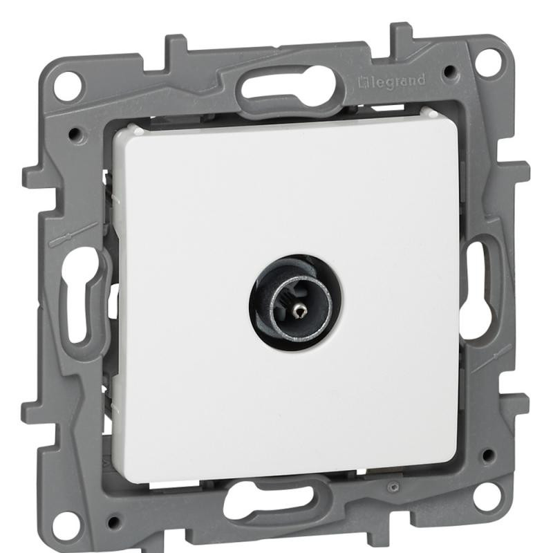 Emballage: 10 - 100 - 1000 Marque: LegrandRéférence: 664751EAN: 3245066647517Description: Niloé prise TV mâle 14dB 0-2400 MHz blanc à vis