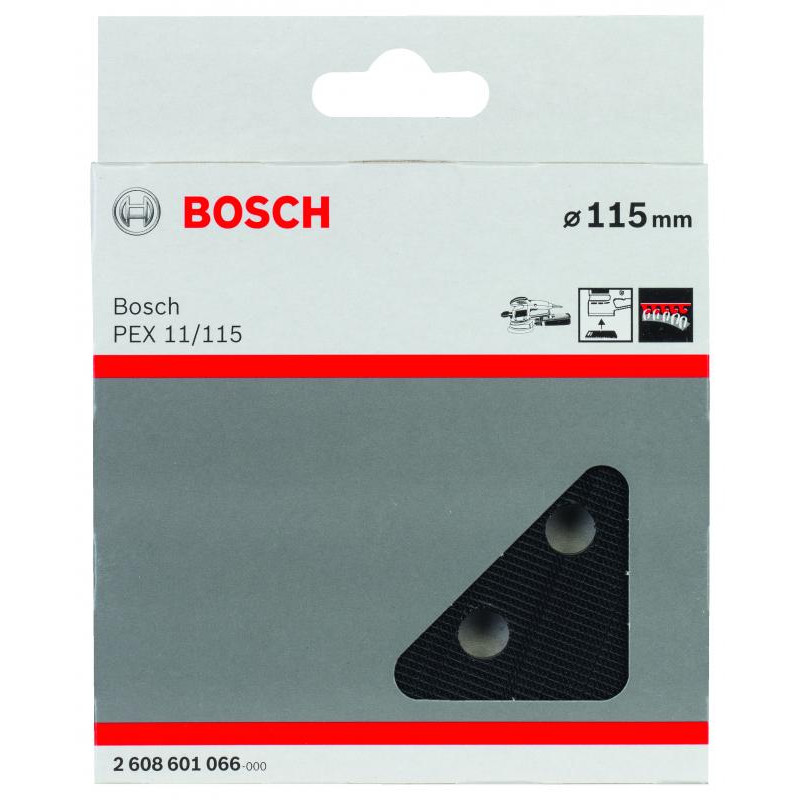 Emballage: 1Marque: BoschRéférence: 2608601066EAN: 3165140079174Description: Plateau de ponçage souple PEX 115