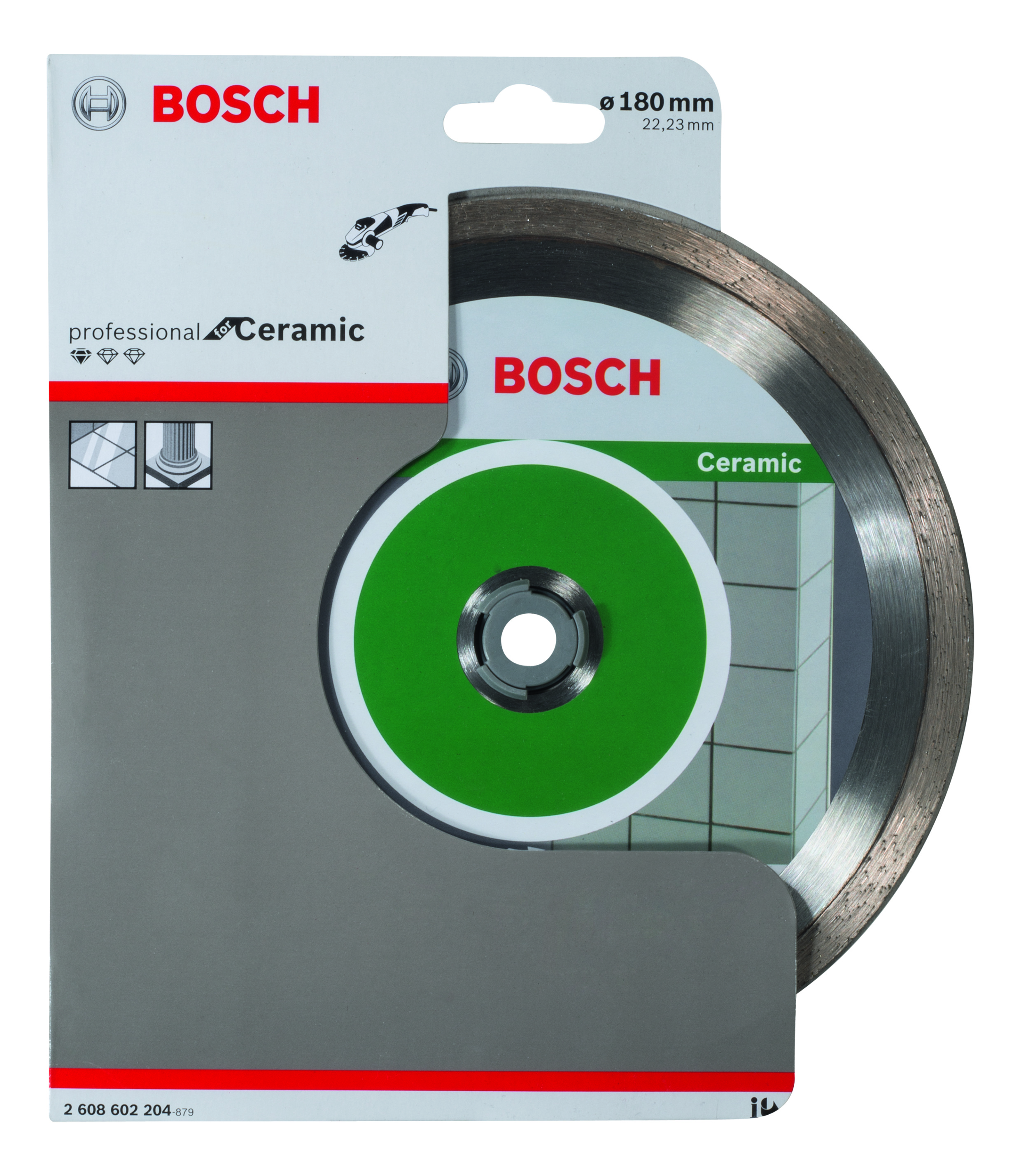 Emballage: 1 Marque: Bosch Référence: 2608602204 EAN: 3165140441322 Description: Disque à tronçonner diamanté Standard for Ceramic 180 x 22,23 x 1,6 x 7 mm