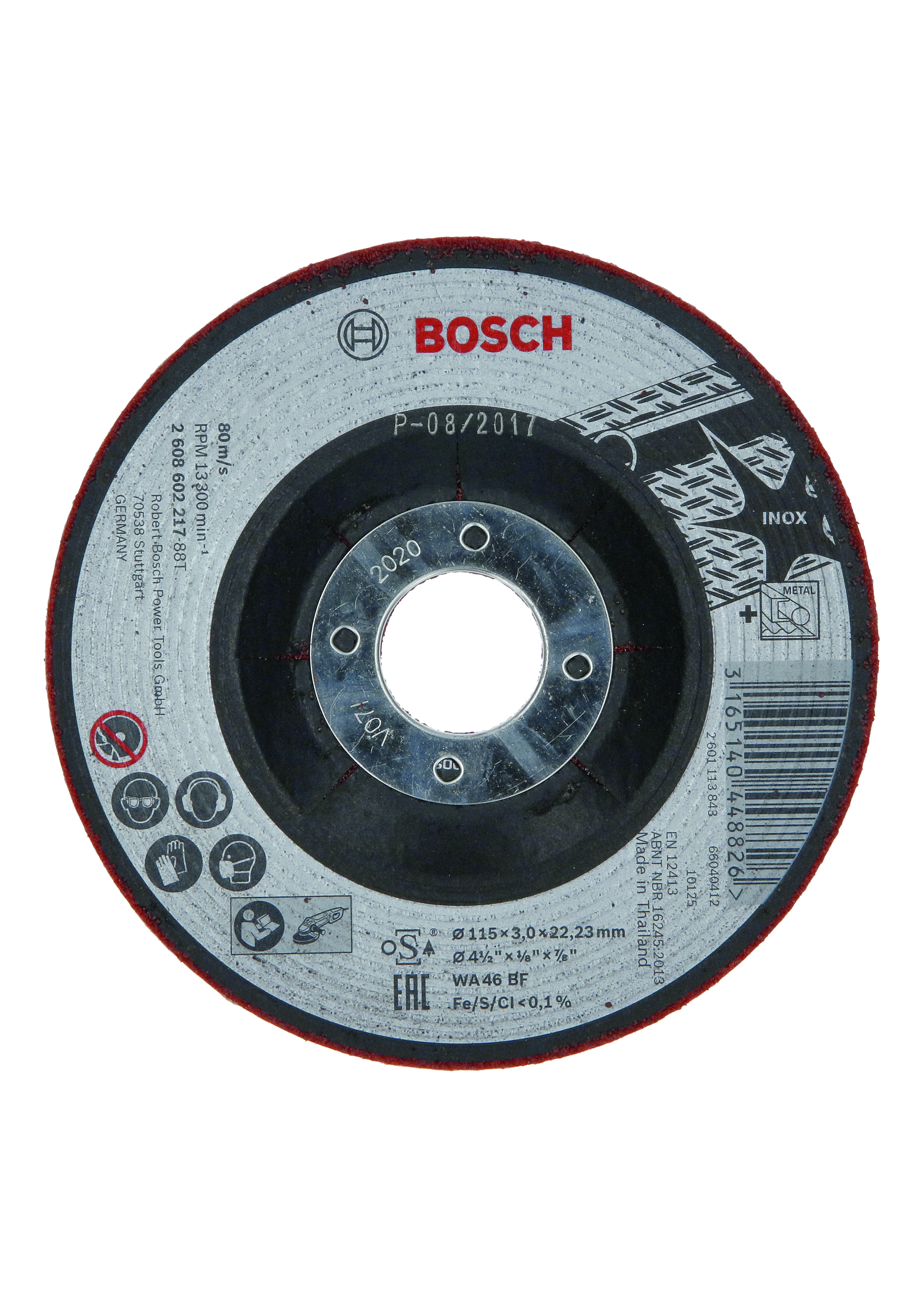 Emballage: 1Marque: BoschRéférence: 2608602218EAN: 3165140448833Description: Meule à ébarber PRO semi-flexible 125x3x22.23 mm