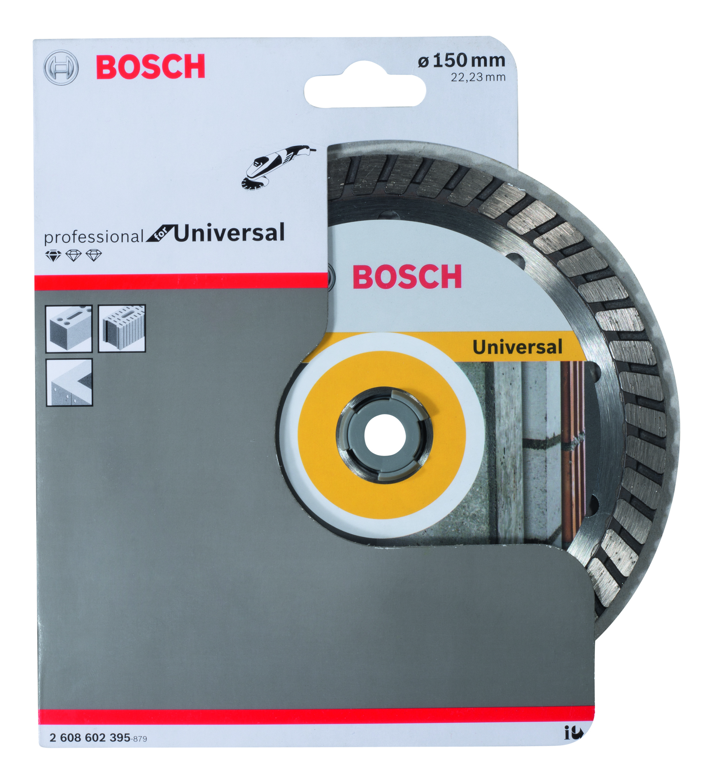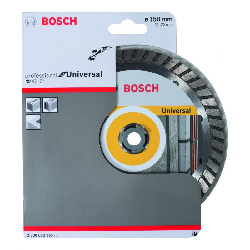 Emballage: 1 Marque: Bosch Référence: 2608602395 EAN: 3165140510028 Description: Disque à tronçonner diamanté Standard for Universal Turbo 150 x 22,23 x 2,5 x 10 mm