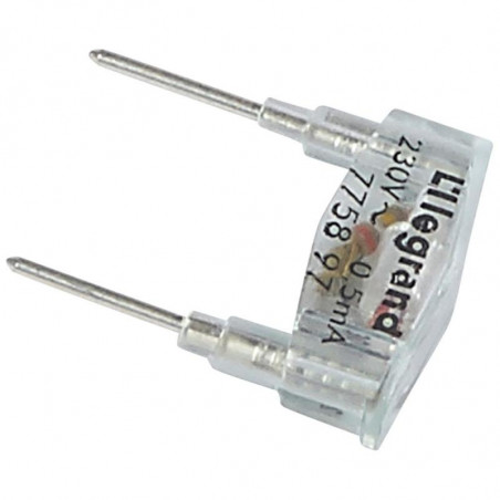 Emballage: 10 - 100 - 6000 Marque: LegrandRéférence: 069497EAN: 3245060694975Description: Lampe de rechange 230 V - 0,5 mA - verte - pour fonction lumineux - pour mécanismes Plexo