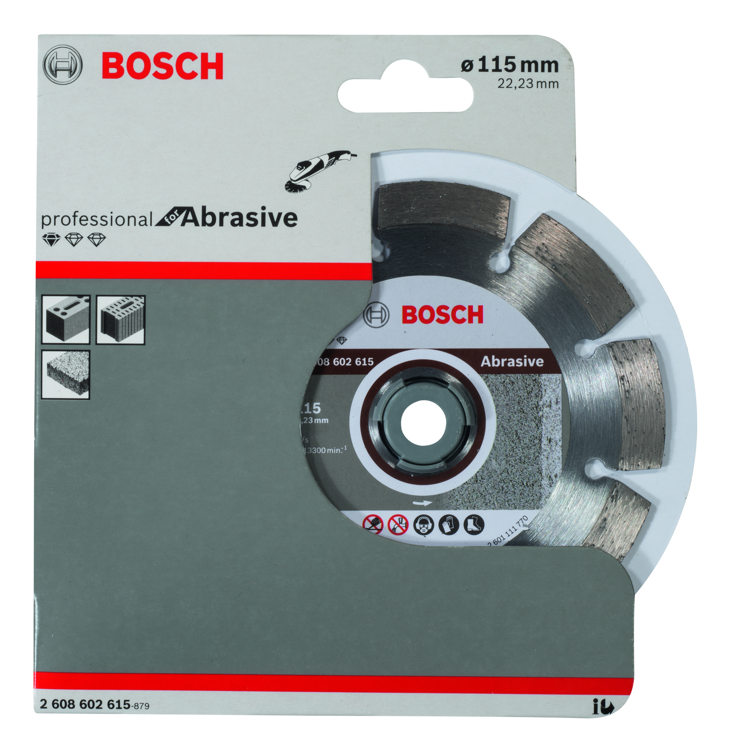 Emballage: 1 Marque: Bosch Référence: 2608602615 EAN: 3165140581219 Description: Disque à tronçonner diamanté Standard for Abrasive 115 x 22,23 x 10 mm