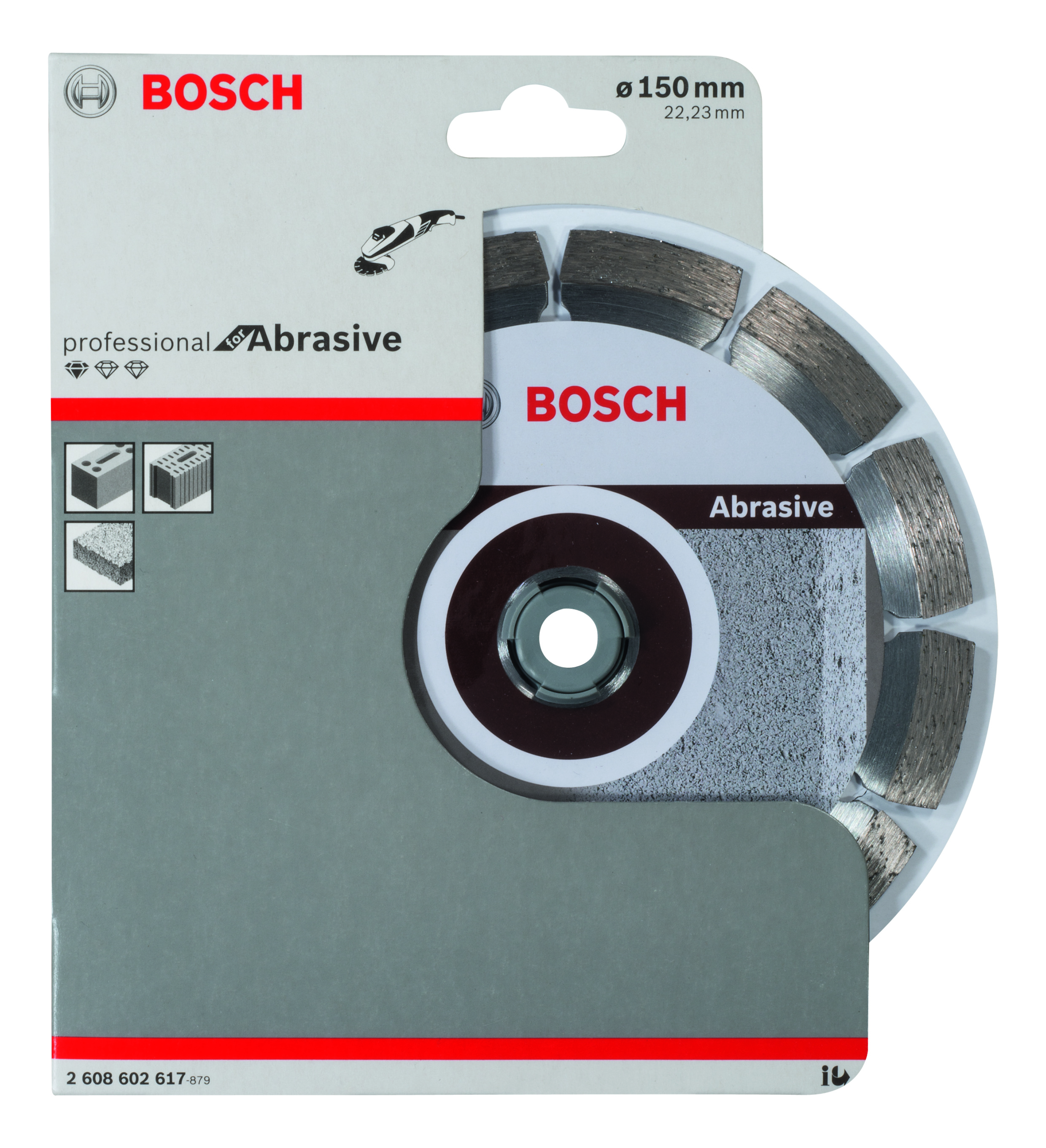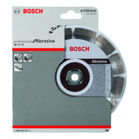 Emballage: 1 Marque: Bosch Référence: 2608602617 EAN: 3165140581233 Description: Disque à tronçonner diamanté Standard for Abrasive 150 x 22,23 x 2 x 10 mm