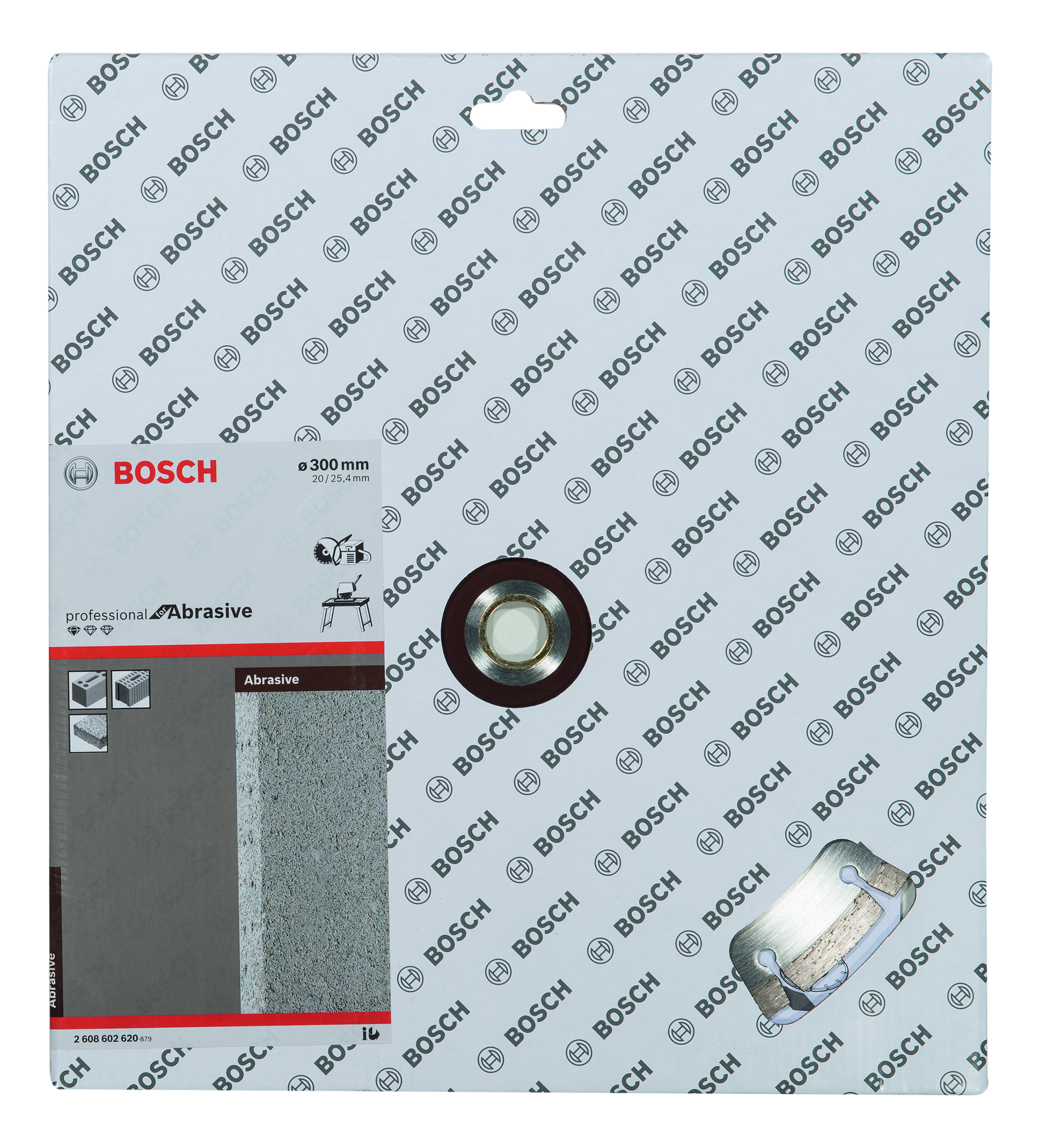 Emballage: 1 Marque: Bosch Référence: 2608602620 EAN: 3165140581264 Description: Disque à tronçonner diamanté Standard for Abrasive 300 x 20/25,40 x 2,8 x 10 mm