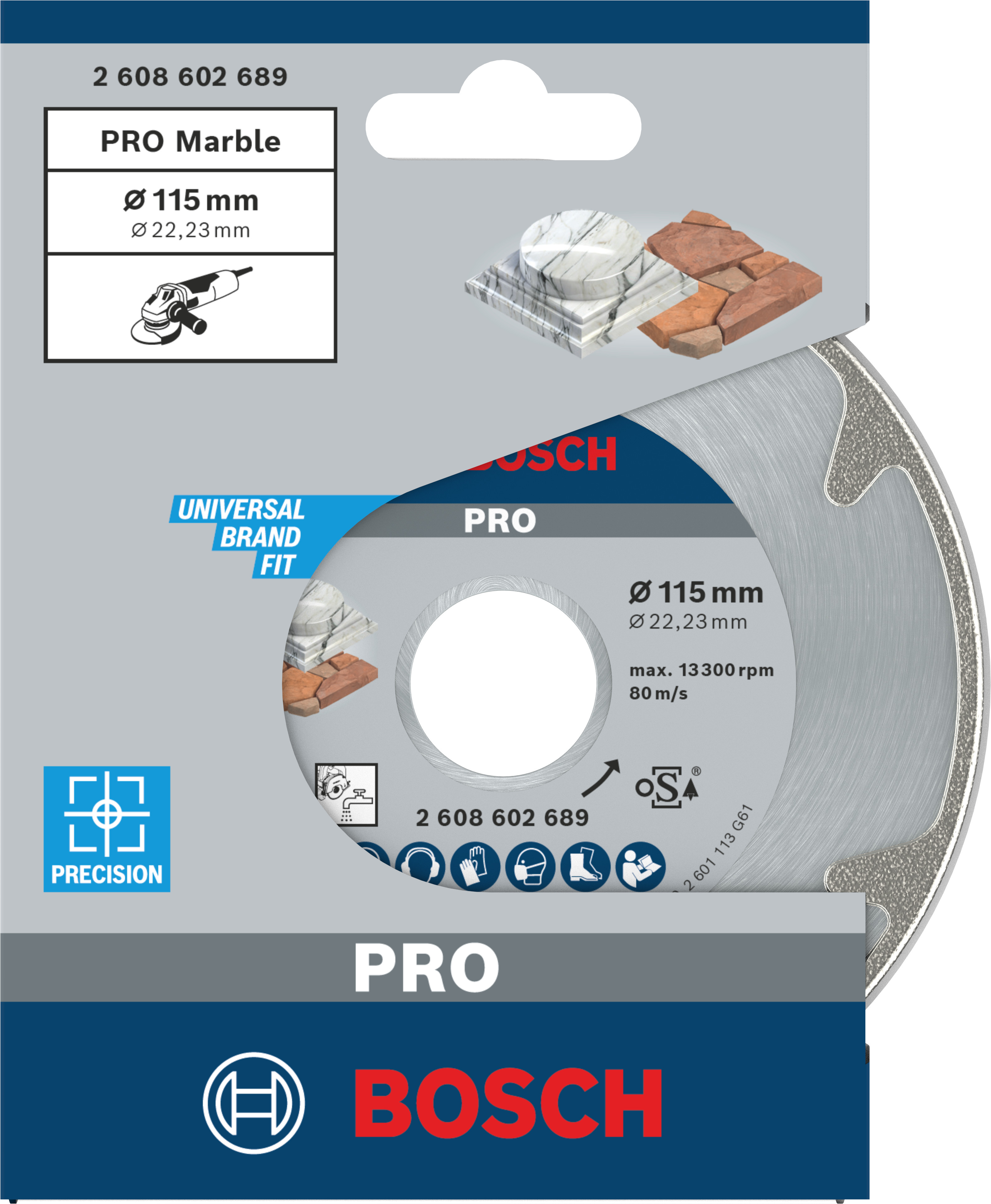 Emballage: 1Marque: BoschRéférence: 2608602689EAN: 3165140581950Description: Disque diamant PRO Marble 115x22,23 mm