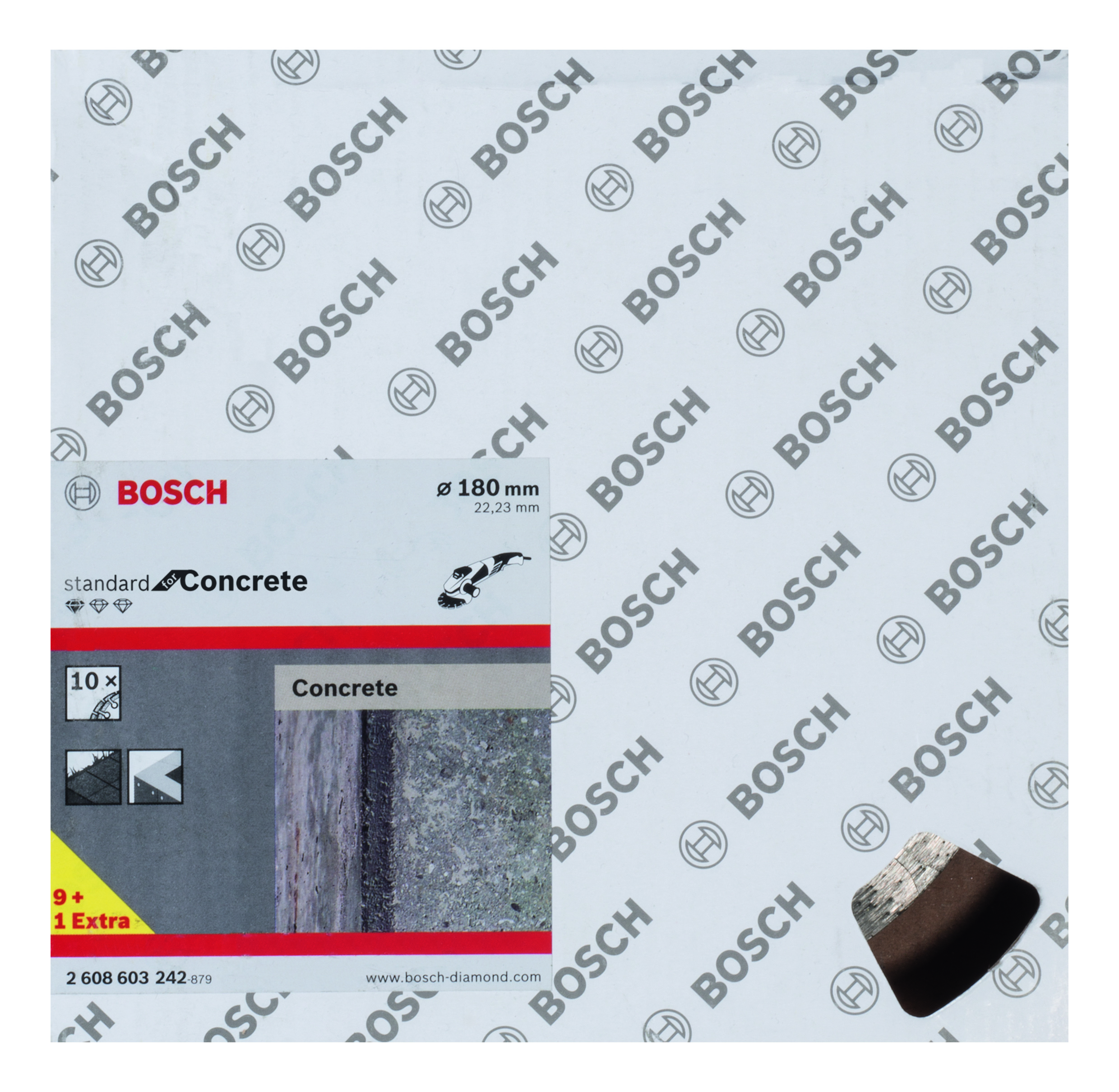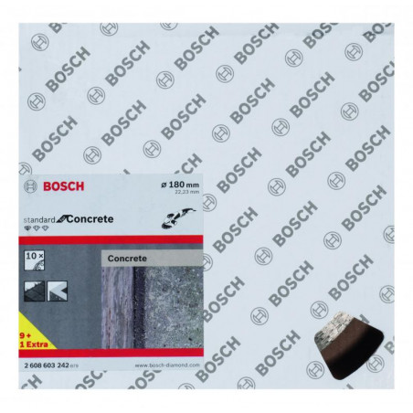 Emballage: 10 Marque: Bosch Référence: 2608603242 EAN: 3165140665834 Description: Disque à tronçonner diamanté Standard for Concrete 180 x 22,23 x 2 x 10 mm 10x