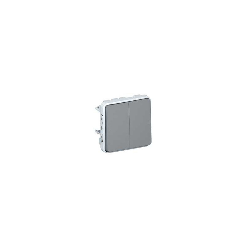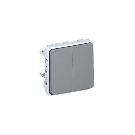 Description: Plexo composable double poussoir NO + NF - 10 A - gris - IP 55 - IK 07 - avec bornes automatiques