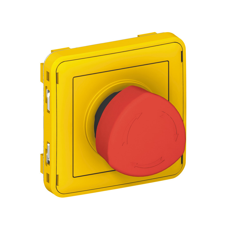 Description: Plexo composable poussoir à déverrouillage par 1/4 de tour (coupure d'urgence) - contact NO + NF - gris/jaune - 3 A - 250 V - IP 55