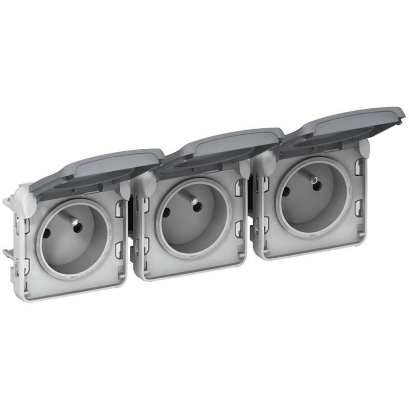 PLEXO PRISE 3X2P+T HOR. AUTO 10/16A 250V COMPOSABLE GRIS / Non stocké! / Emballage: 5 - 50 - 500