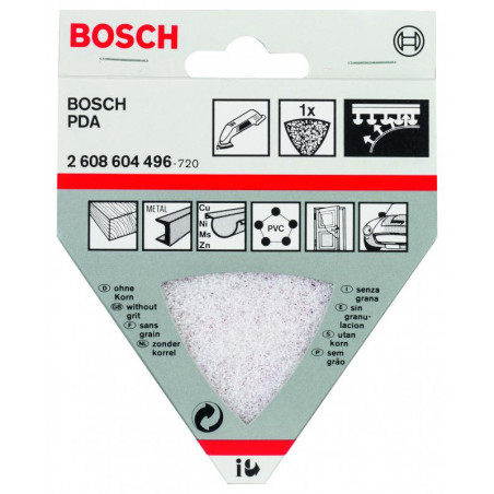 Emballage: 1Marque: BoschRéférence: 2608604496EAN: 3165140070829Description: Non-tissé de nettoyage sans grain, 93 mm