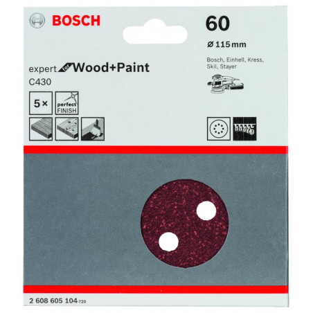 Abrasif C430 Expert for Wood and Paint, diamètre 115 mm, grain 60, 8 trous, 5x