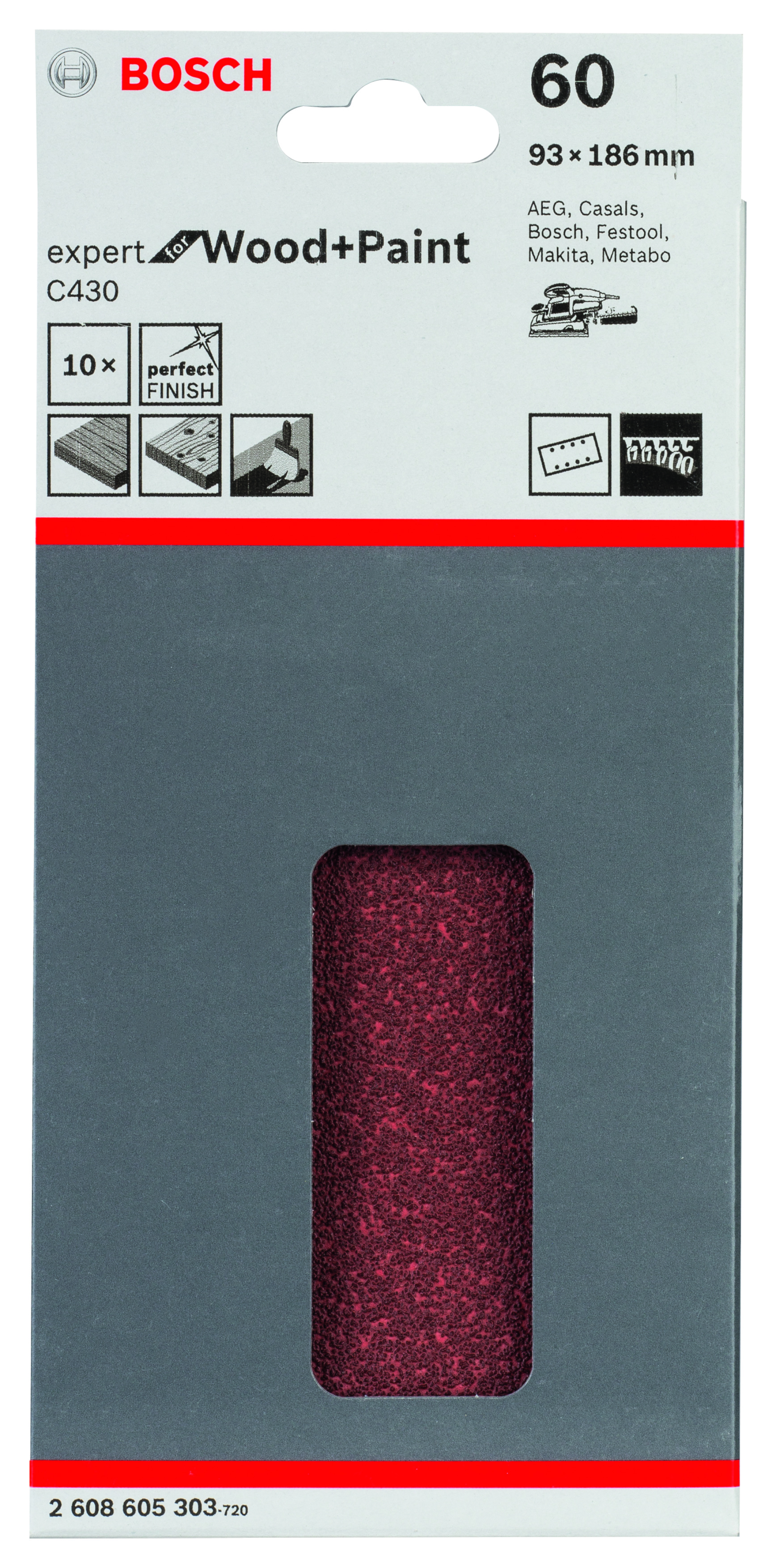 Abrasif C430 Expert for Wood and Paint, 93 x 186 mm, grain 60, 8 trous, 10x
