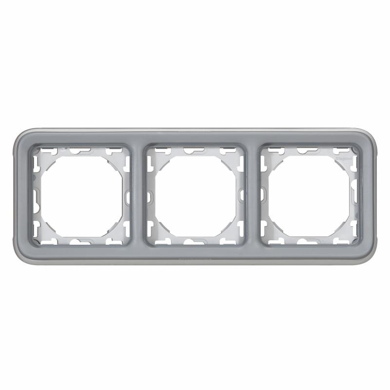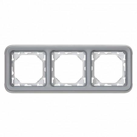 Description: Support plaques - 3 postes horizontaux - Plexo composable - gris - pour installation des appareils en encastré - entraxe 71 mm