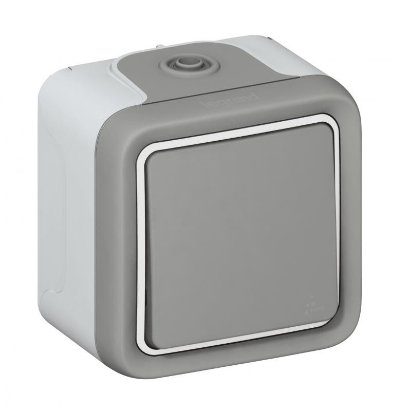 Description: Plexo interrupteur deux directions - gris - appareil complet - 10 A - 250 V - IP 55 - emballage adapté pour vente en magasin