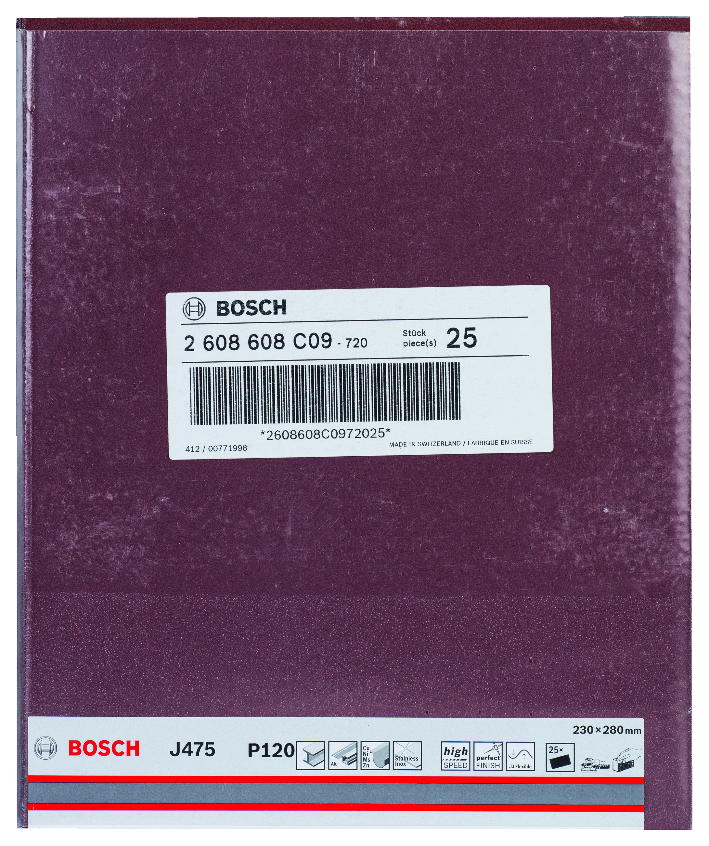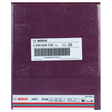 Emballage: 1Marque: BoschRéférence: 2608608C09EAN: 3165140678421Description: Abrasif J475 Best for Metal, 230 x 280 mm, grain 120
