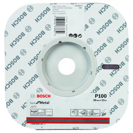 Emballage: 1Marque: BoschRéférence: 2608608C32EAN: 3165140678650Description: Rouleau abrasif J475 Best for Metal, 38 mm x 25 m, grain 100