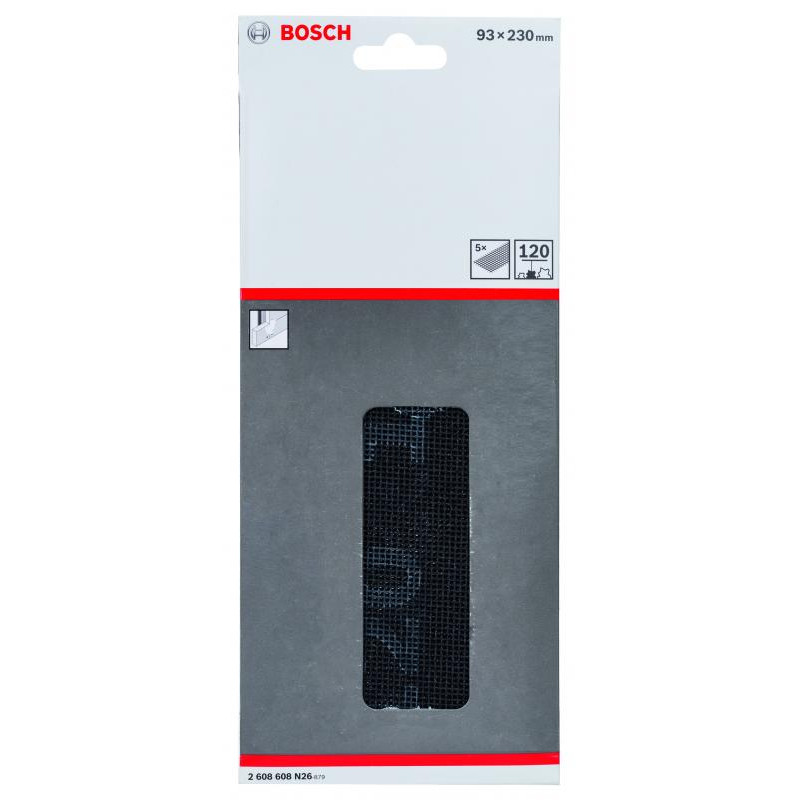 Emballage: 5Marque: BoschRéférence: 2608608N26EAN: 3165140714501Description: Grille de ponçage 93 x 230 mm, G120 5x