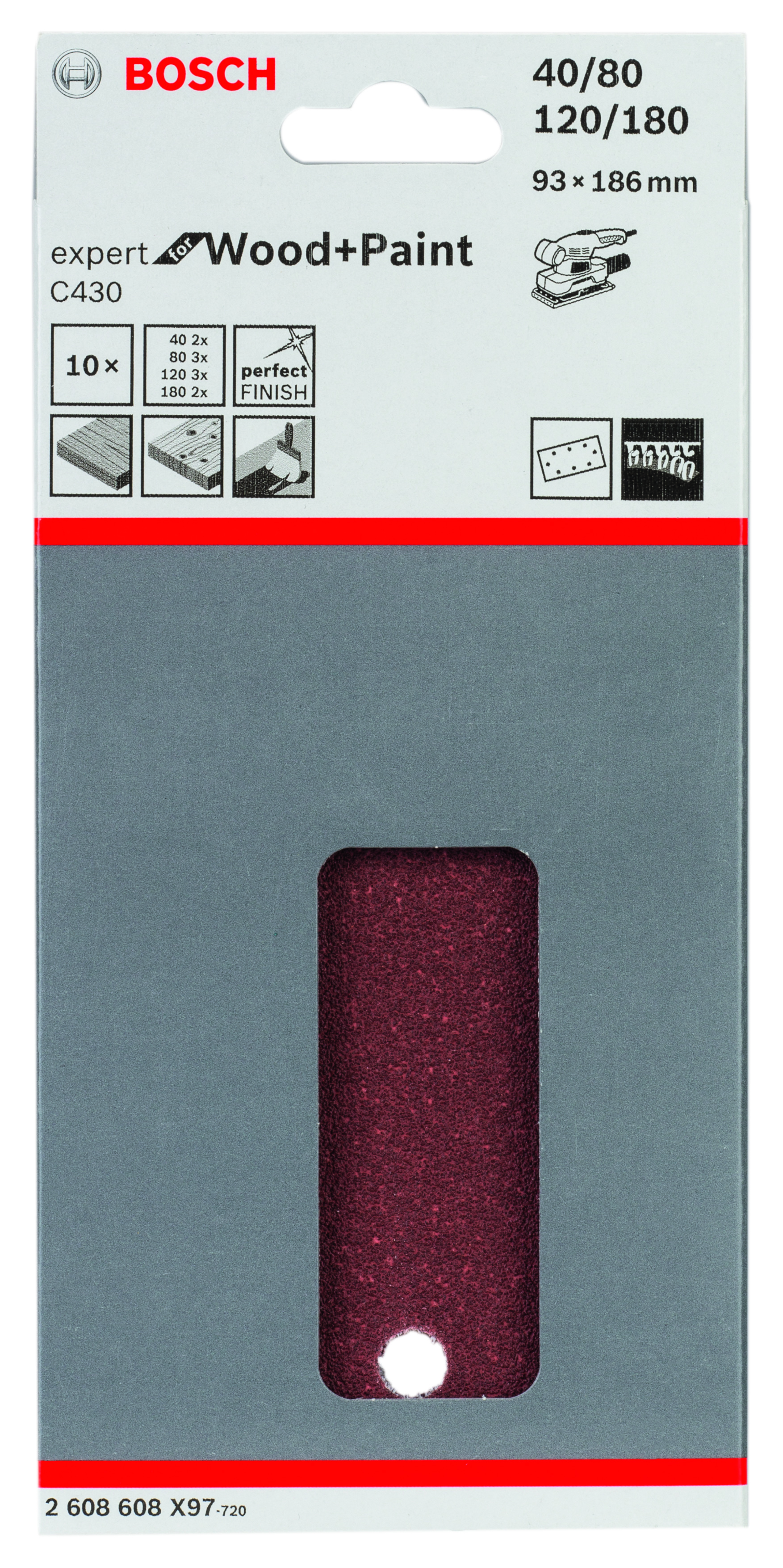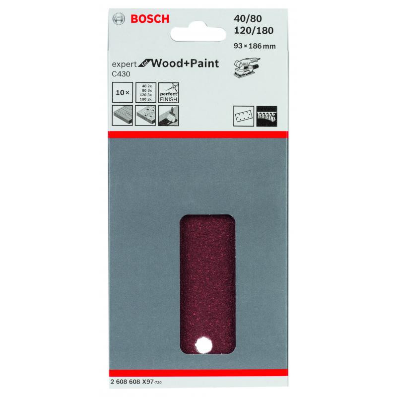 Abrasif C430 Expert for Wood and Paint, diamètre 93 x 186 mm, grain 2x40; 3x80; 3x120; 2x180, 8 trous