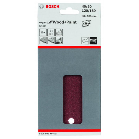 Description: Abrasif C430 Expert for Wood and Paint, diamètre 93 x 186 mm, grain 2x40; 3x80; 3x120; 2x180, 8 trous