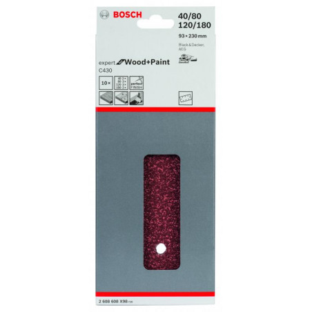 Description: Abrasif C430 Expert for Wood and Paint, diamètre 93 x 230 mm, grain 2x40; 3x80; 3x120; 2x180, 8 trous