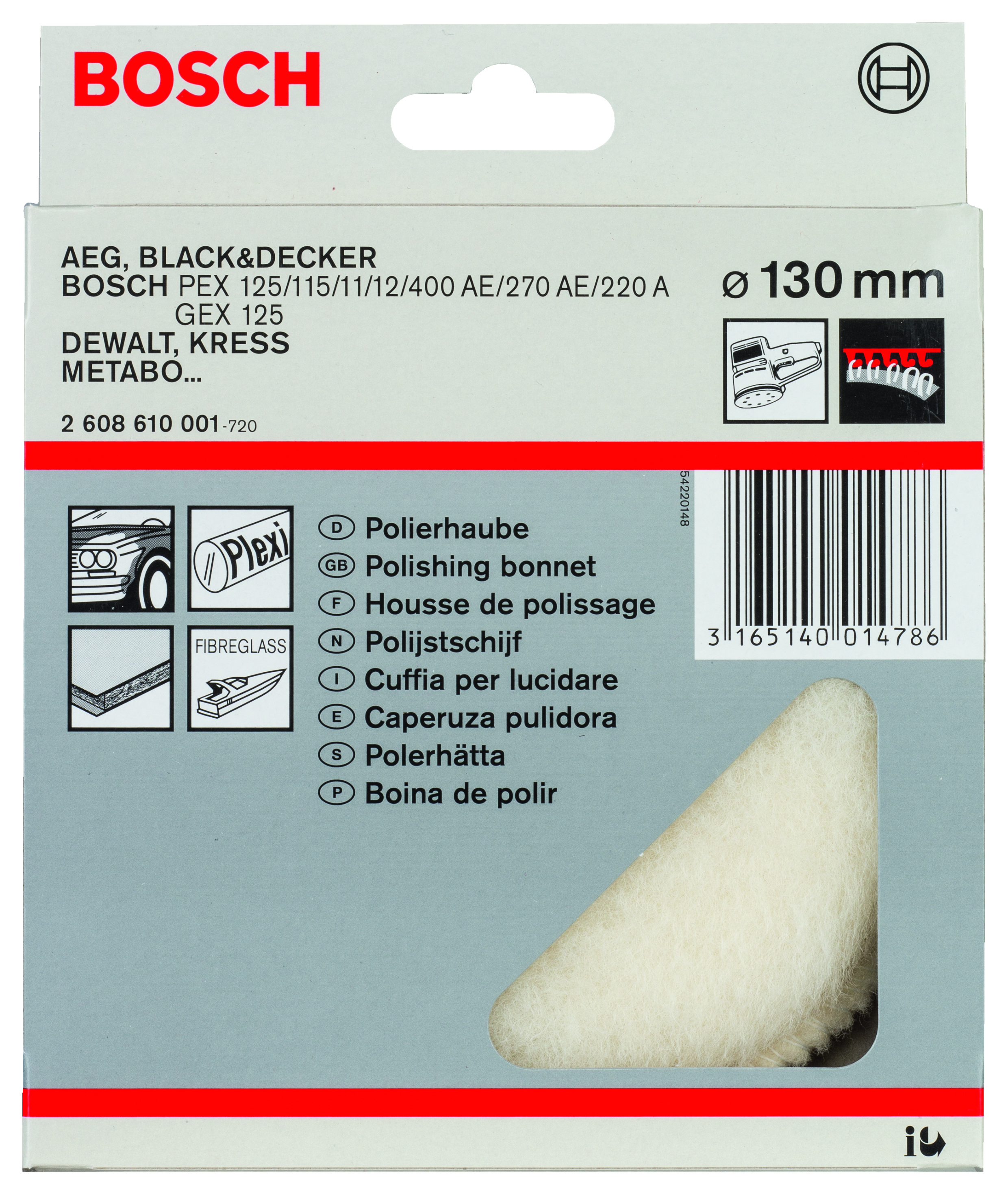 Emballage: 1Marque: BoschRéférence: 2608610001EAN: 3165140014786Description: Peau de mouton, 130 mm