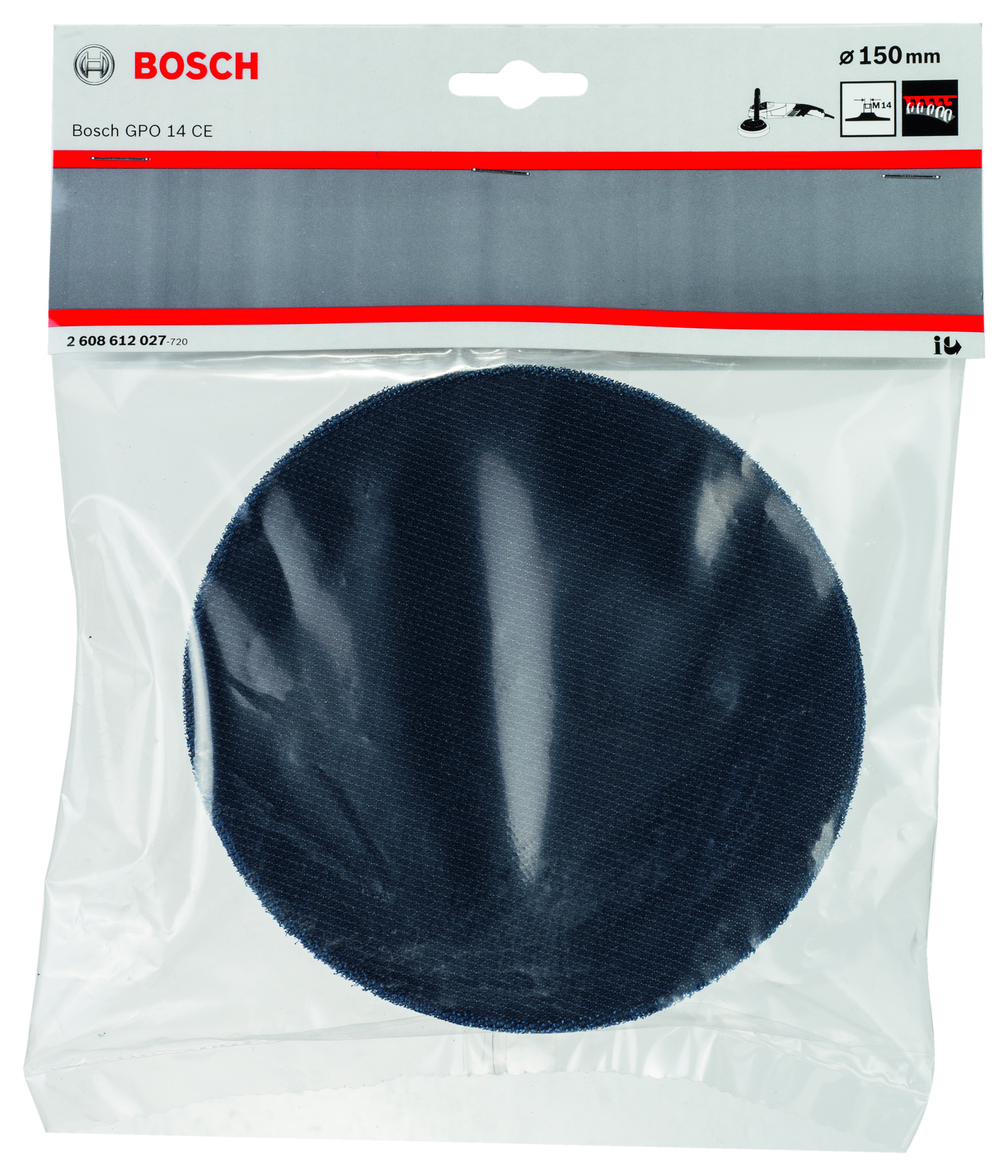 Emballage: 1Marque: BoschRéférence: 2608612027EAN: 3165140632430Description: Plateau de ponçage avec système auto-agrippant M 14 x 150 mm